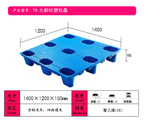 1.吹塑一次成型,隔墙离地存放时不会潮湿、不会生虫,方便清洗,不给微生物和其他虫害提供滋生的温床,更适合食品、医药、烟草、化工等要求严格的行业,为您的严格把控提供方便。 2.表面光滑平整无毛刺,边角为弧度角,不会刮伤或磕碰您的产品,让您使用更安心。 3.吹塑产品不存在破裂情况,无料屑、粉粒和杂质,为您的产品安全保驾护航。 4.载重大:动载1-1.5t,静载4-5t,是原来注塑普通托盘的数倍,更换方便。